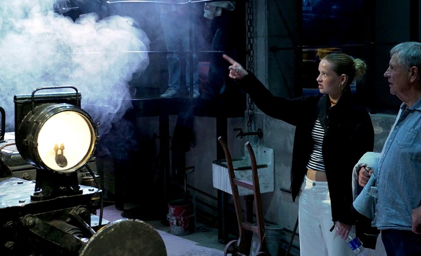 Der forekommer pludselige høje lyde og damp ved lokomotivet i afsnit "Vokseværk 1850-1950".
