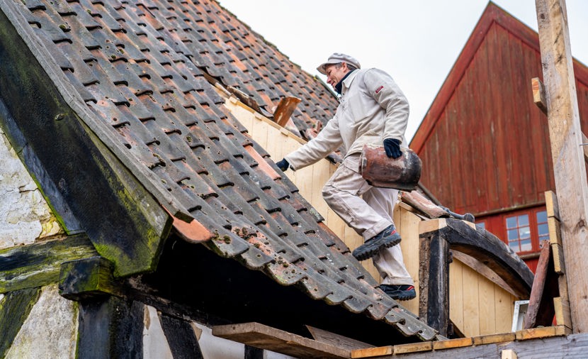• Understrygning af tegltage hydraulisk kalkmørtel med fæhår