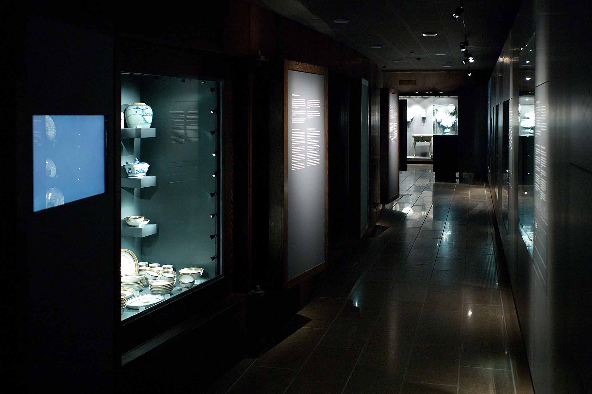 Der geografische Schwerpunkt der Ausstellung liegt auf Dänemark und Schleswig-Holstein, aber auch norwegische, englische, holländische, deutsche und fernöstliche Produkte sind vertreten. Auf diese Weise ist die Ausstellung ein Spiegelbild der Fayencen und Porzellane, die das Bürgertum im Laufe der Zeit benutzte.