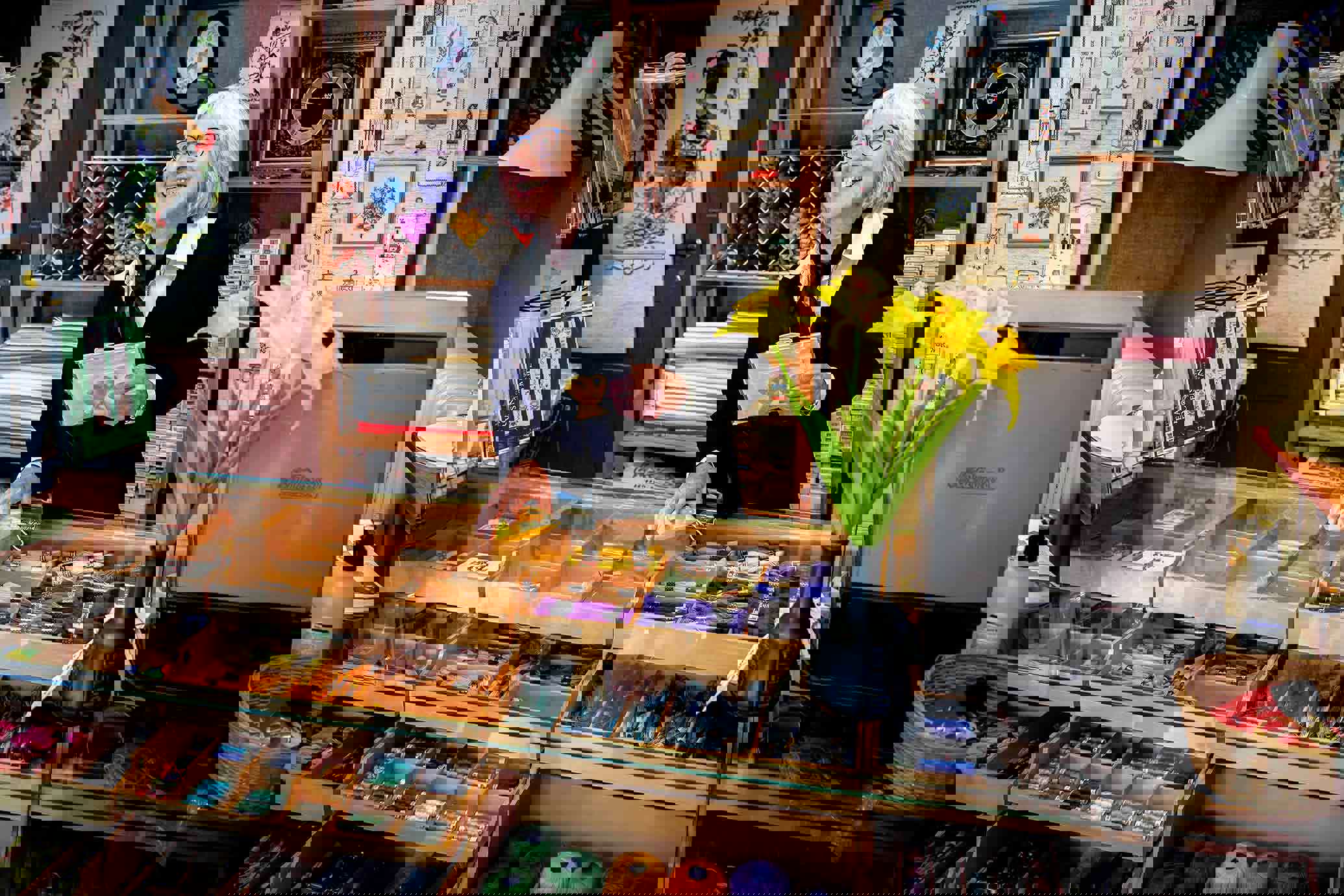 Neben bunten Garnknäueln, Strickmustern und einer Sammlung der schönsten Stickereien der Epoche können Sie auch ein Stickereiset erwerben und dieses schöne Hobby selbst ausprobieren. Wir verkaufen eine große Auswahl an Stickpackungen aus der Zeit von 1970 bis 1974.