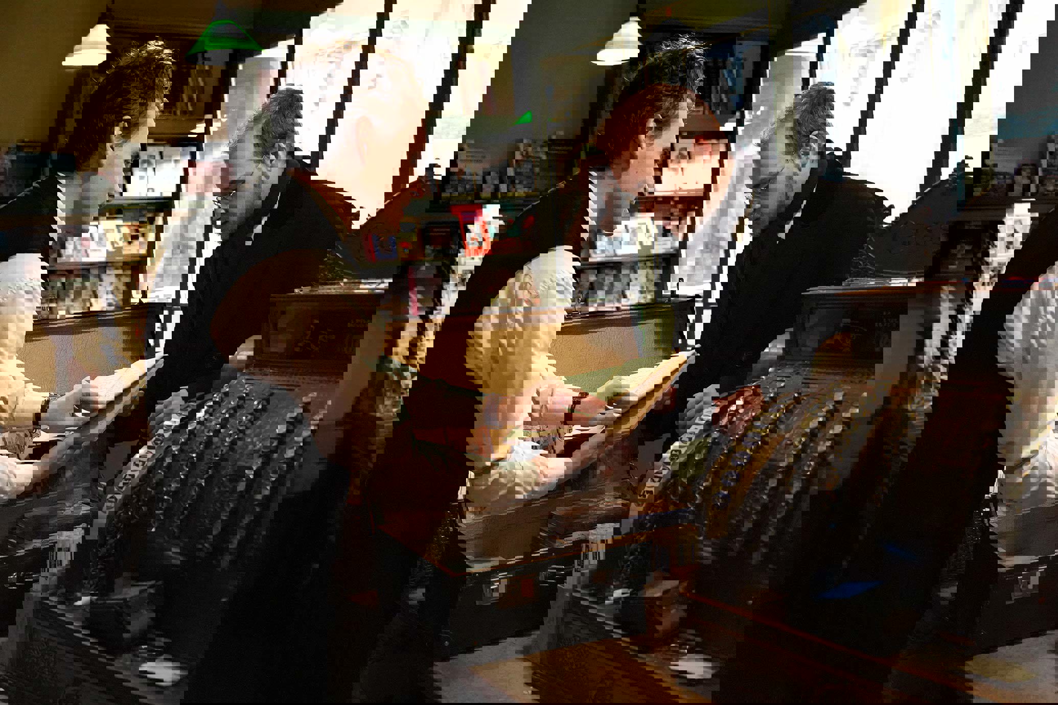Treten Sie in die Buchhandlung ein und lassen Sie sich vom Buchhändler etwas aus der Epoche erzählen und die speziell ausgewählten Artikel des Ladens vorstellen