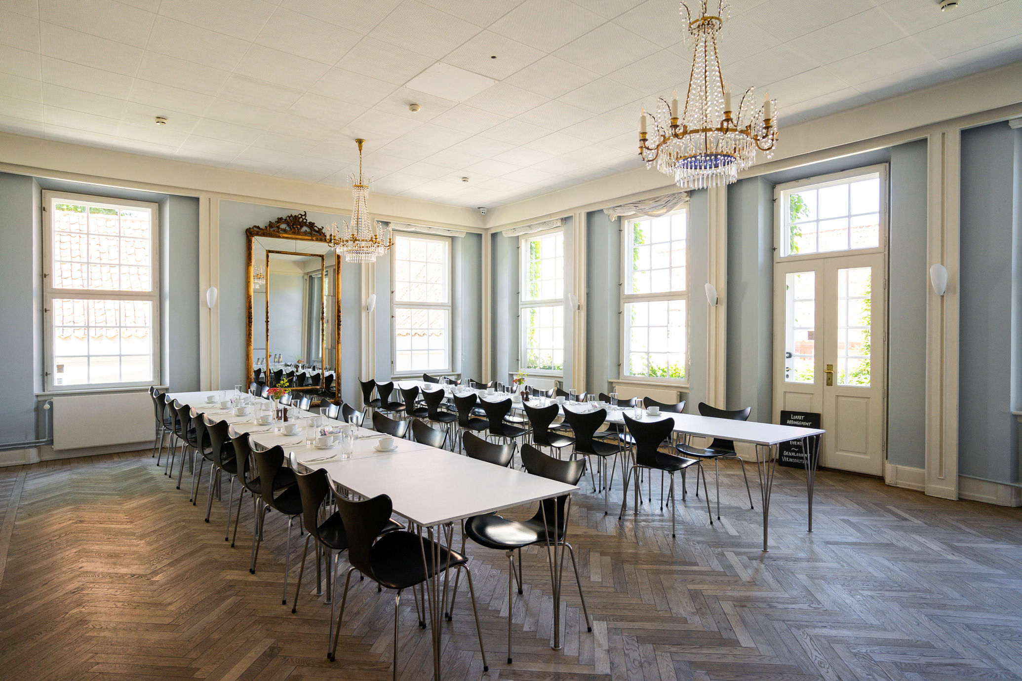 Vi dækker op med servietter og enkle blomster/grønt fra Den Gamle Bys haver. Der er mulighed for tilkøb af duge.