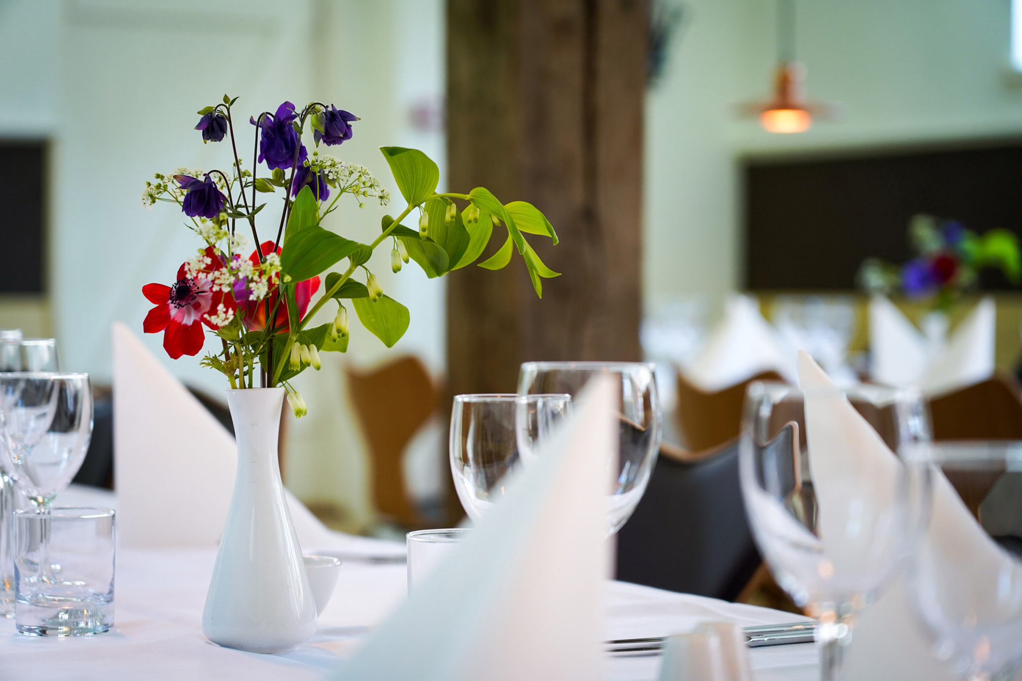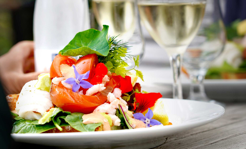Alle retter tilberedes fra bunden og med kærlighed til gode, danske rå­varer. Alle kager og brød er hjemme­bagt, alle dressinger og marinader er hjemmerørt. Hvor det er muligt, an­vendes krydderurter fra Den Gamle Bys haver. Vi hører gerne om særlige ønsker.