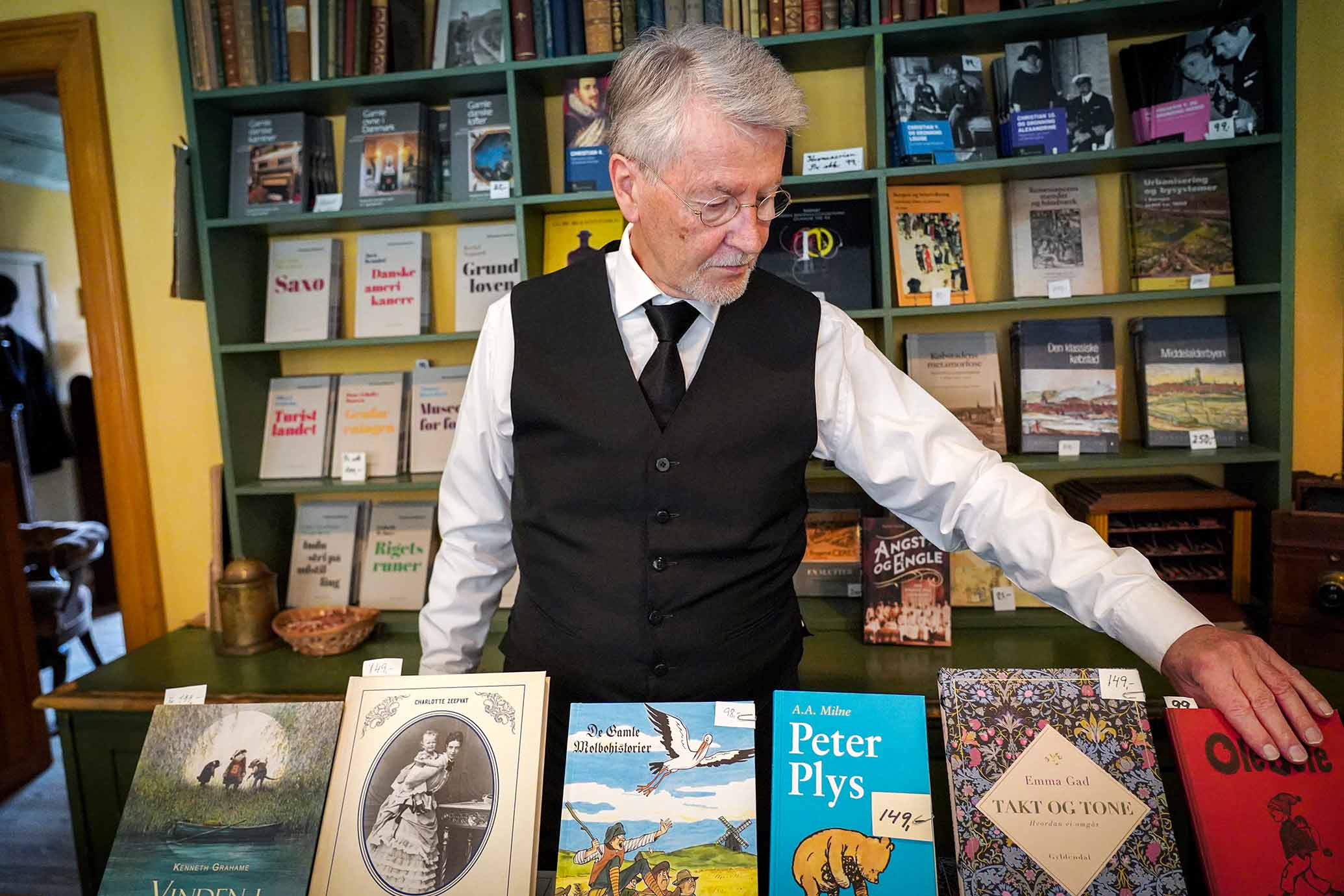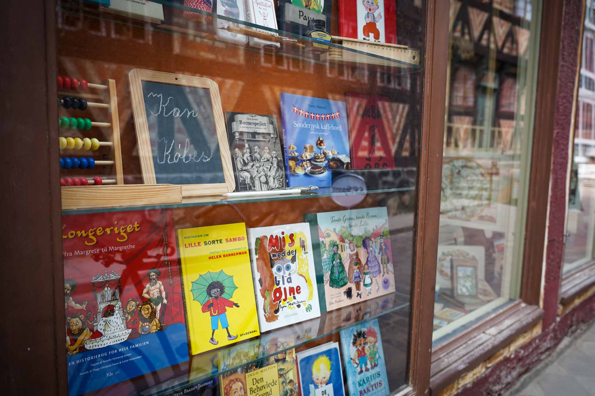 I boghandlen, der er indrettet som en butik fra 1927, kan du købe genoptryk af ældre, danske klassikere, der fortjener en plads i alle hjem. Bladrer og duft til bøgerne, der også inkluderer Den Gamle Bys egne udgivelser og bøger af H.C. Andersen eller prøv at skrive med pen dyppet i blækhuset, sådan som de gjorde for år tilbage.