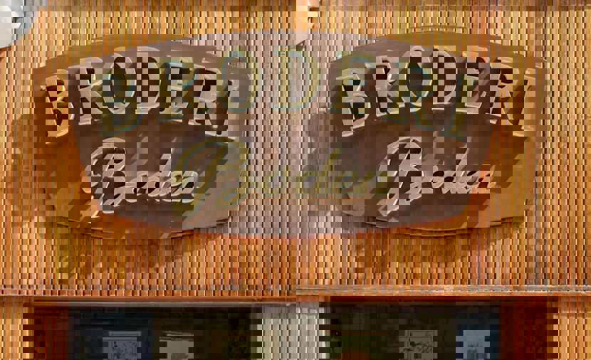 Facadeskiltet - og dermed butikkens navn Broderiboden - stammer fra en butik, der lå på hjørnet af Istedgade og Jægergårdsgade i Aarhus. Sine Houlberg Hansen ejede denne butik fra 1959 og frem til 1987.