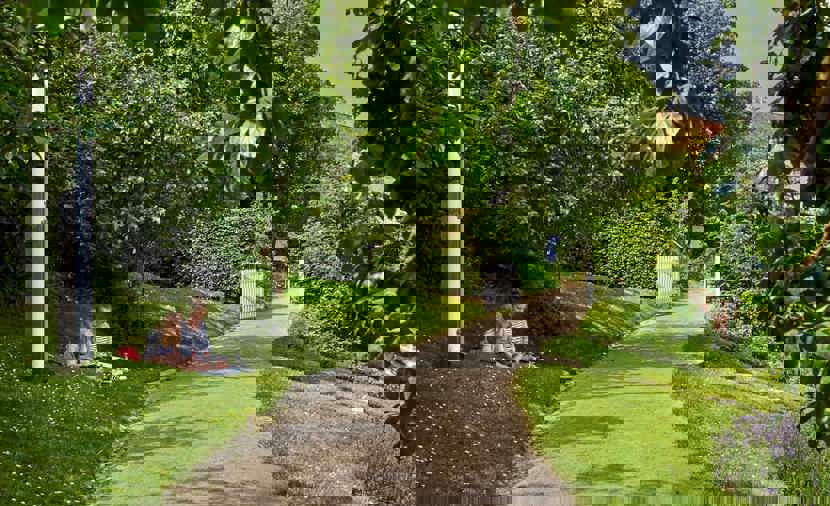 Gå gennem haverne langs havestien, hvor organiske stiforløb mellem frodige staudebede, afløses af køkkenhavens regelmæssige inddeling og det 20. århundredes forkærlighed for græsplæner.