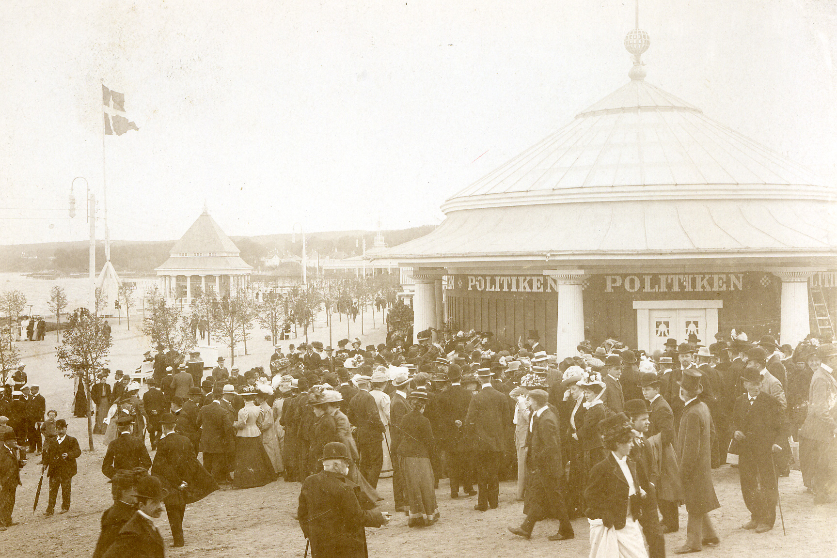 Pavillonen er tegnet af arkitekt Anton Rosen, der var hovedarkitekt til Landsudstillingens bygninger og blev oprindeligt opført som Politikens stand på Landsudstillingen. Her rummede den et avistrykkeri, som udgav en daglig avis i den periode, hvor landsudstillingen var åben. Af samme grund fik den kælenavnet "Blækhuset".