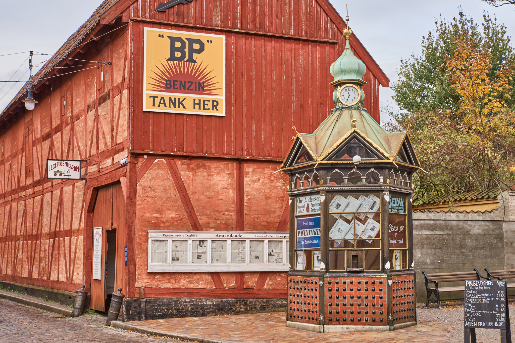 I januar 1973 blev Århus Kioskselskabs ældste telefonkiosk flyttet fra hjørnet af Tordenskjoldsgade og Peder Skrams Gade på Trøjborg til Den Gamle By.