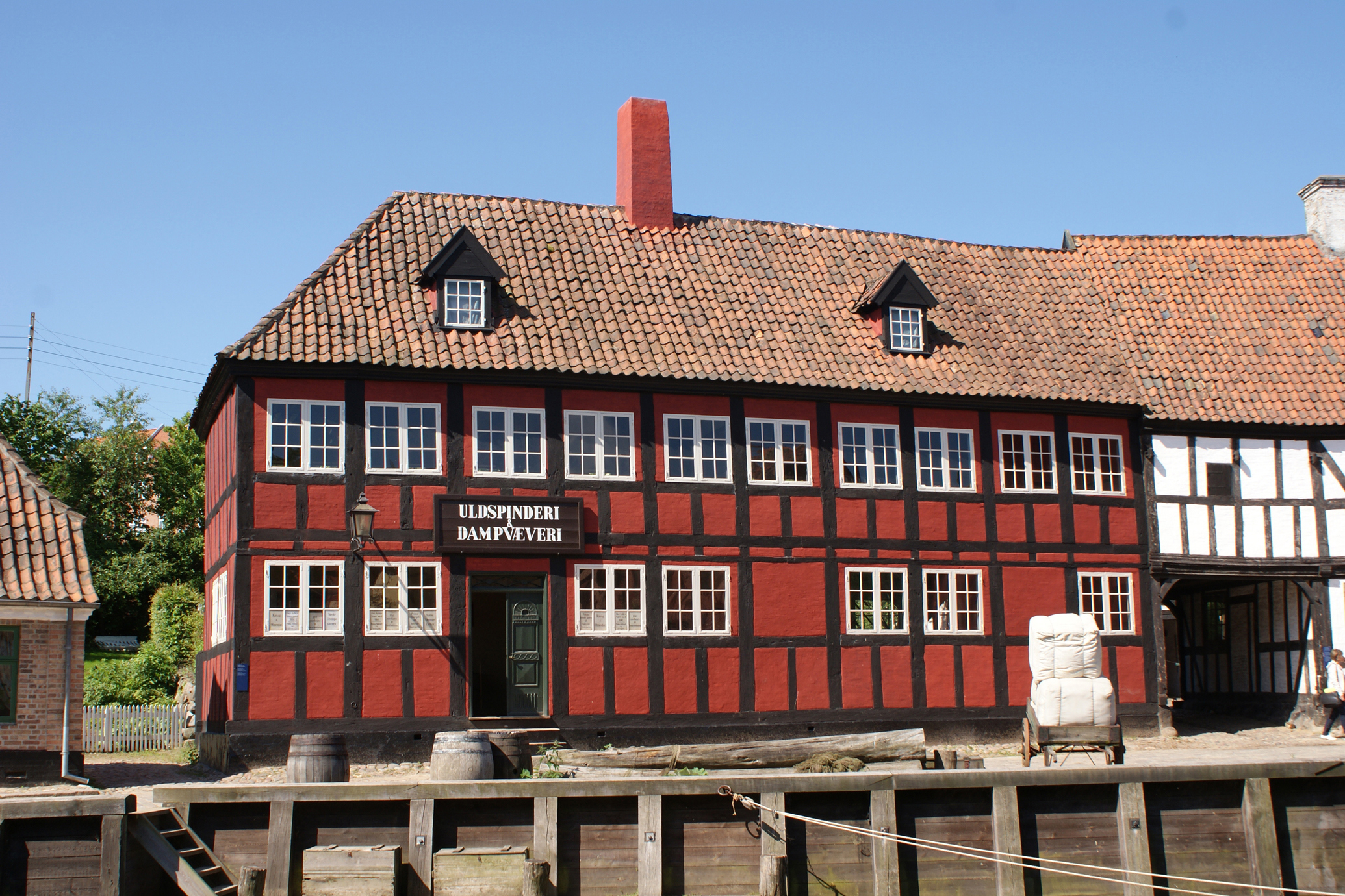 Bygningen blev i 1944 genopført i Den Gamle By og fortæller om 1800-tallets uldspinderier og dampvæverier.
