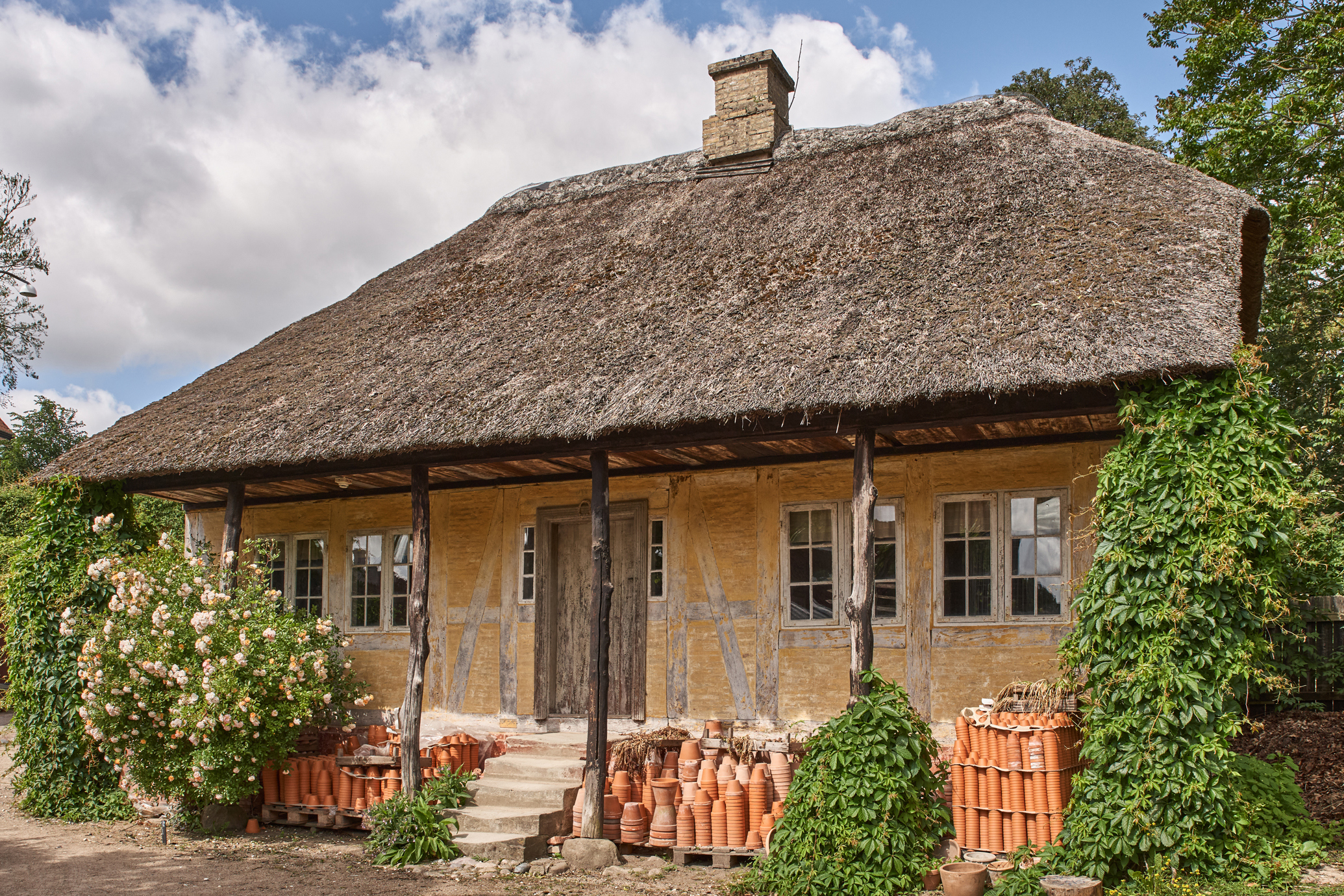 Bygningen er fra 1830 og stammer fra herregården Stenalt på Djursland. Den har meget svært egebindingsværk og er sandsynligvis opført af materialer fra herregårdens nedrevne hovedbygning fra renæssancen.