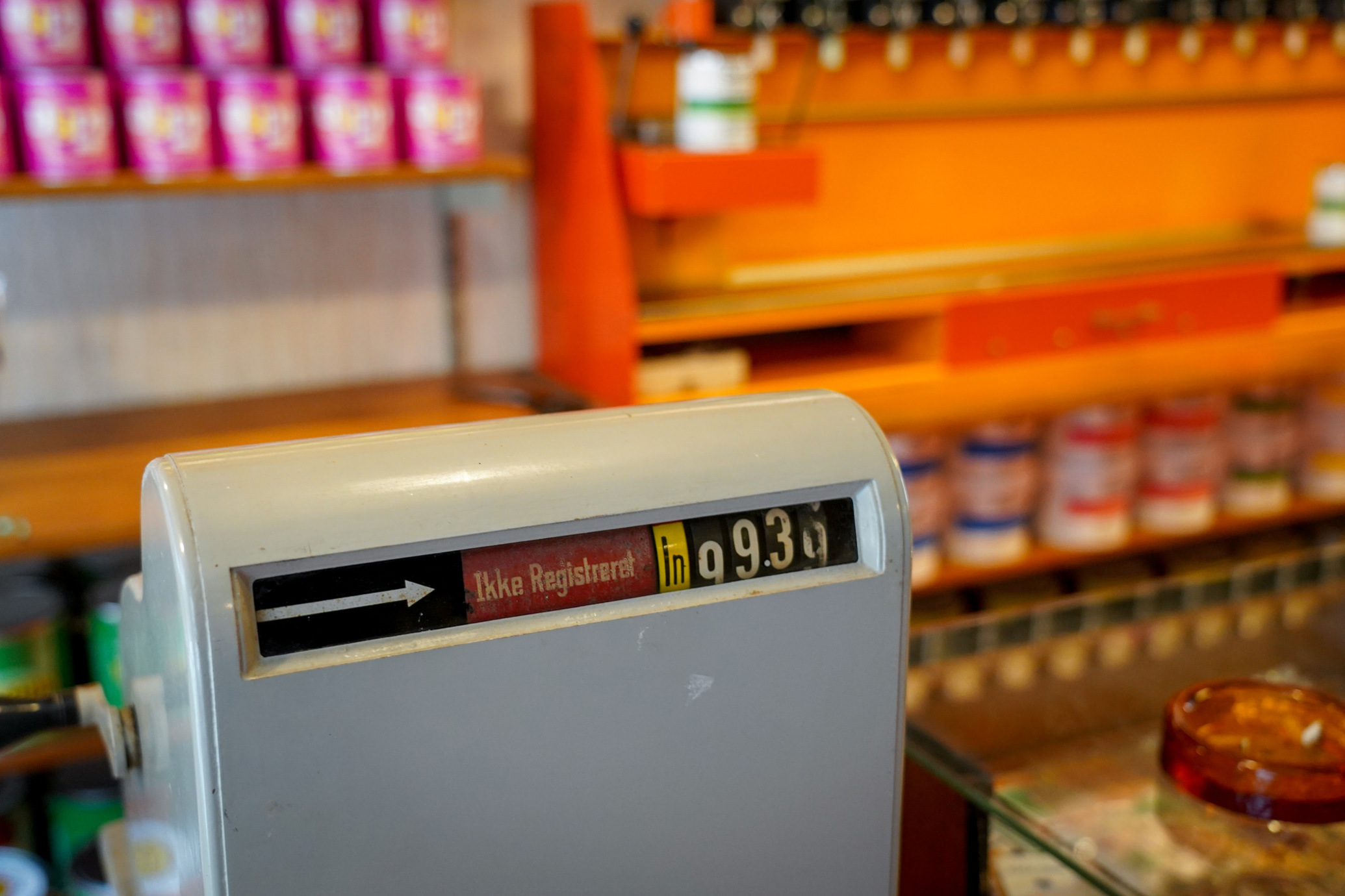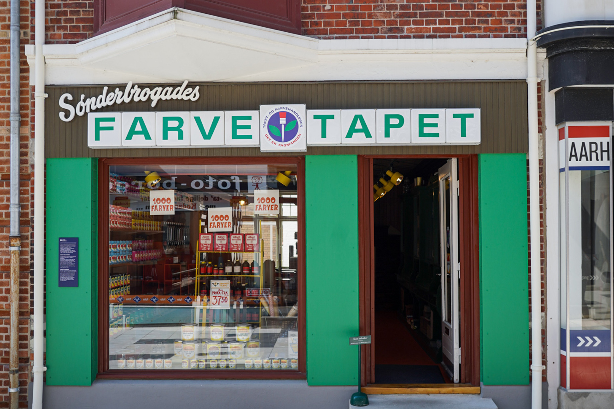 Den lille butiksejendom indeholder en farve- og tapetforretning.