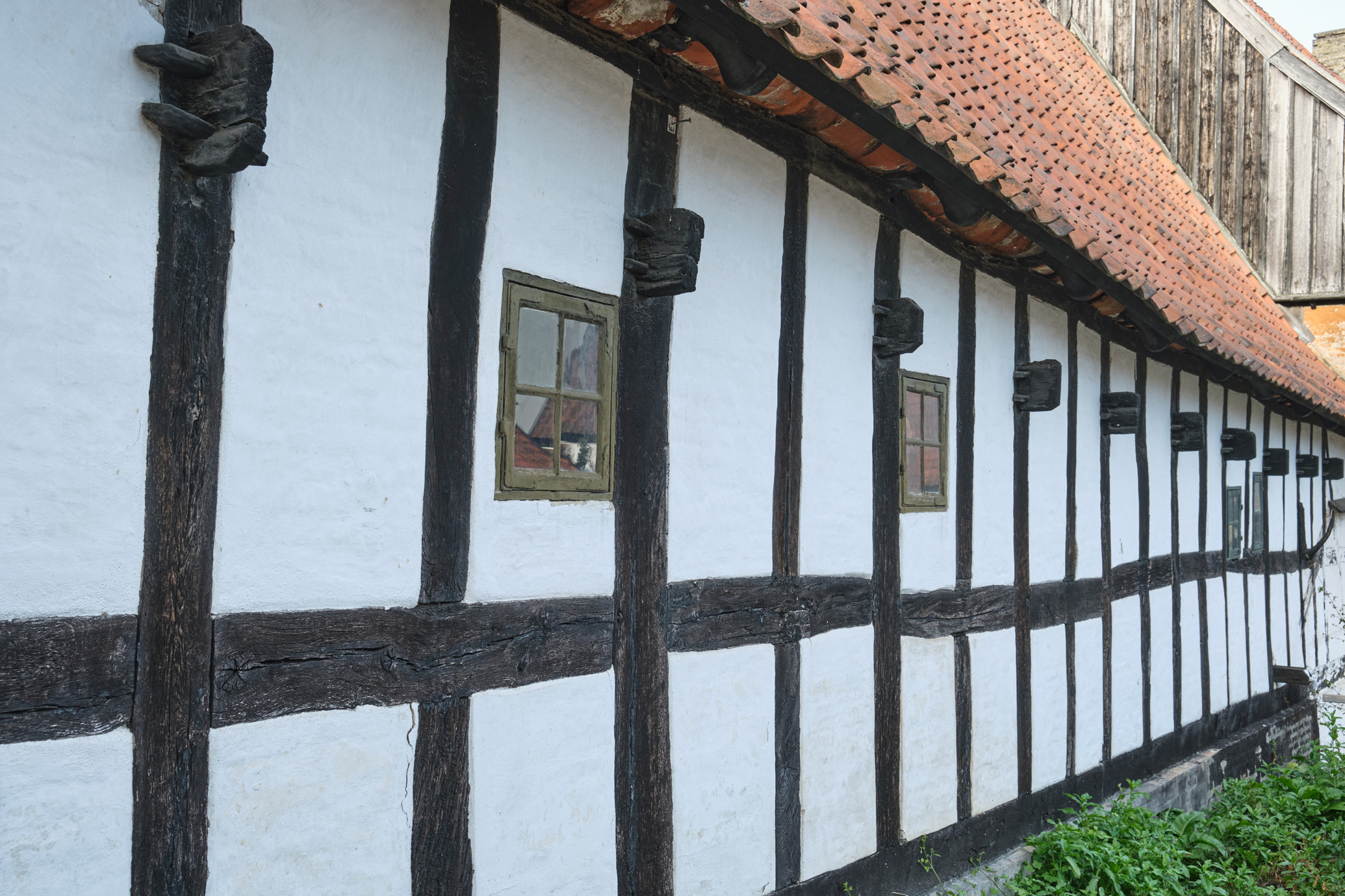 Genopført i Den Gamle By 1931-35 som ramme om enkle boliger og mindre håndværksvirksomheder.