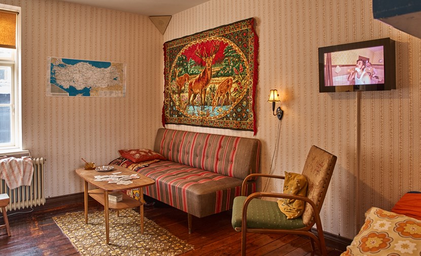 Der er indrettet 6 små lejligheder og en damefrisør. I stueetagen med egen indgang ligger Damefrisør salon Annie, st. th Den enlige mor, st. tv Arbejderhjemmet, 1. th Tyrkiske gæstearbejdere, 1. tv Lærerhjemmet, 2. th Hippieparret, 2. tv Den grønlandske studerende.