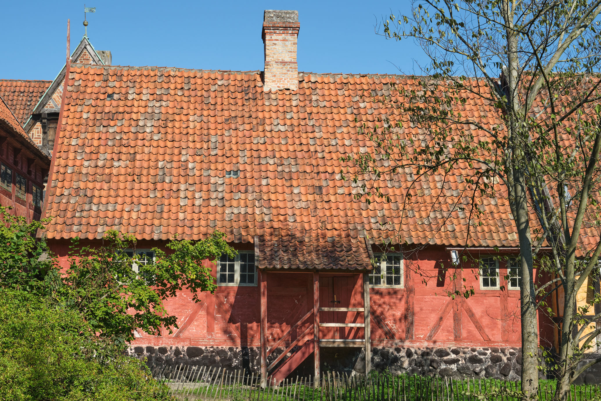 Genopført i én etage i Den Gamle By 1928 og indrettet som farveri.