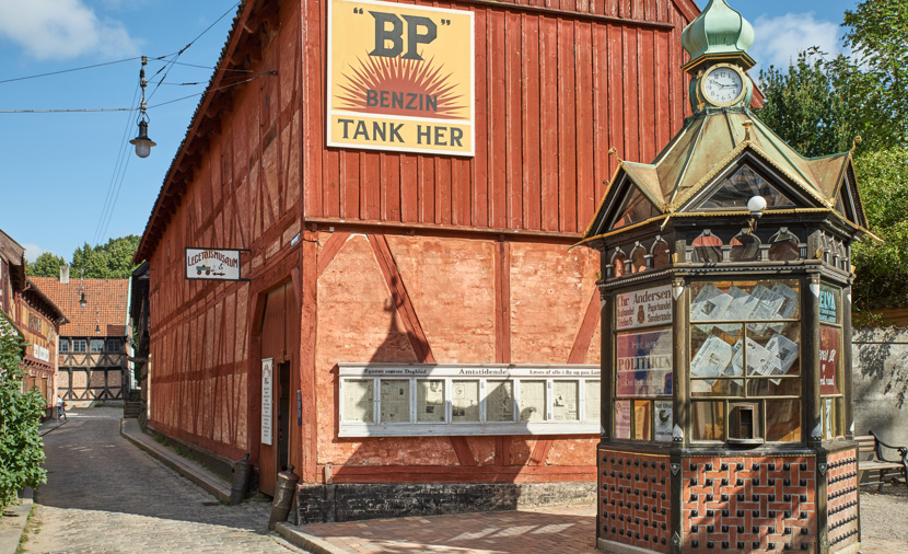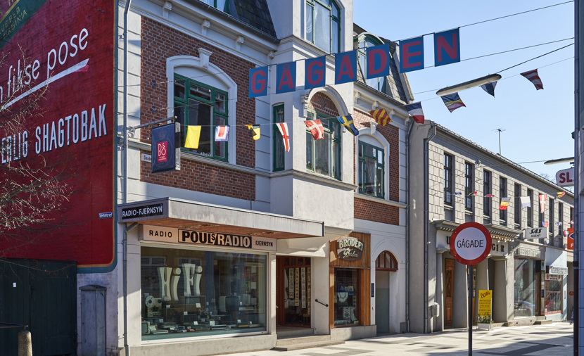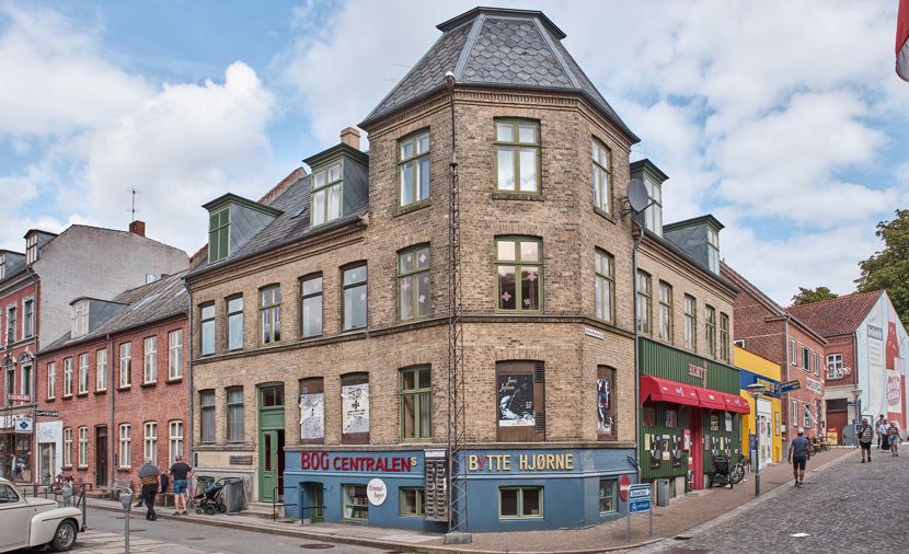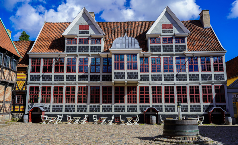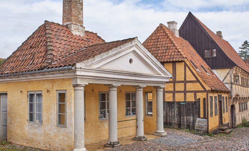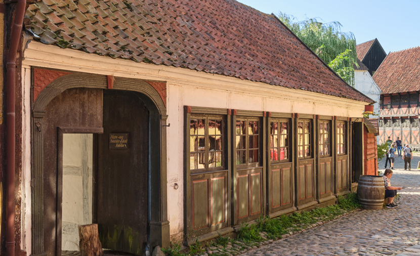 Historiske huse fra København, Helsingør, Kalundborg, Korsør og Næstved. 3 ejendomme fra Sjælland udgør kernen i Den Gamle Bys 1974-bydel.