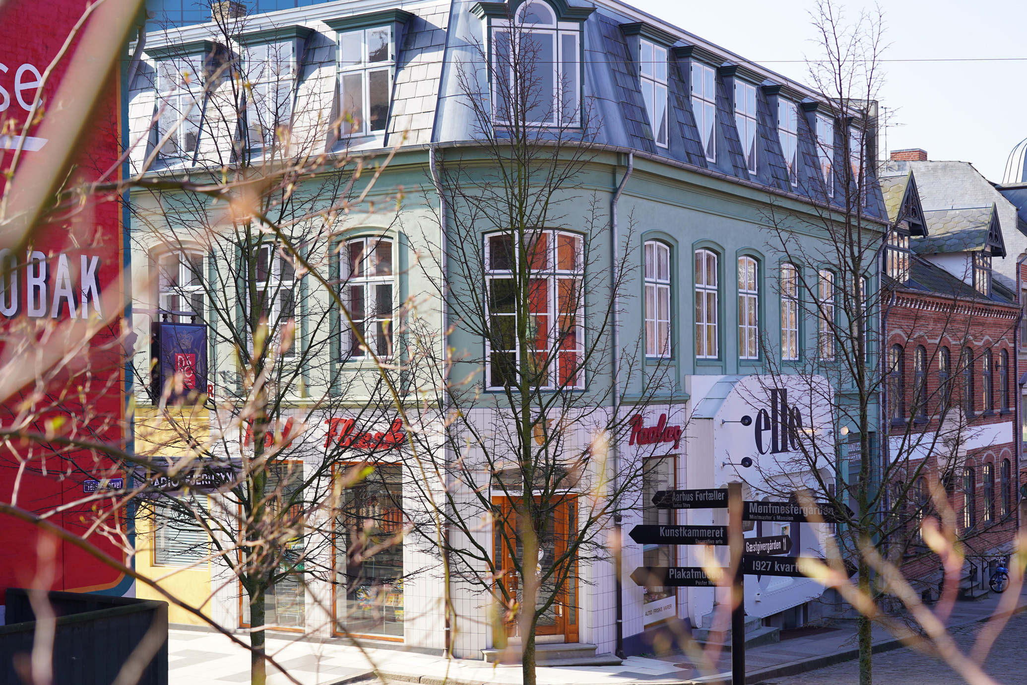 Modebutik, slagter og ost