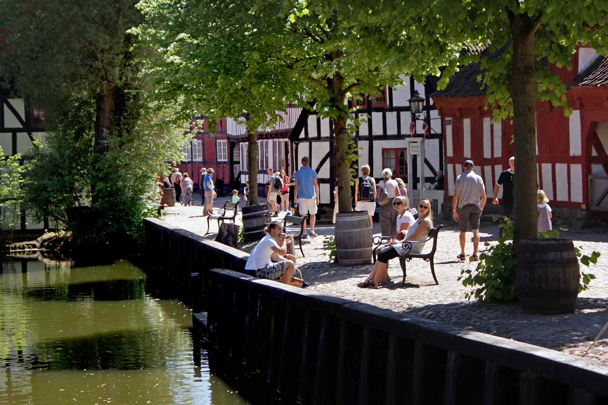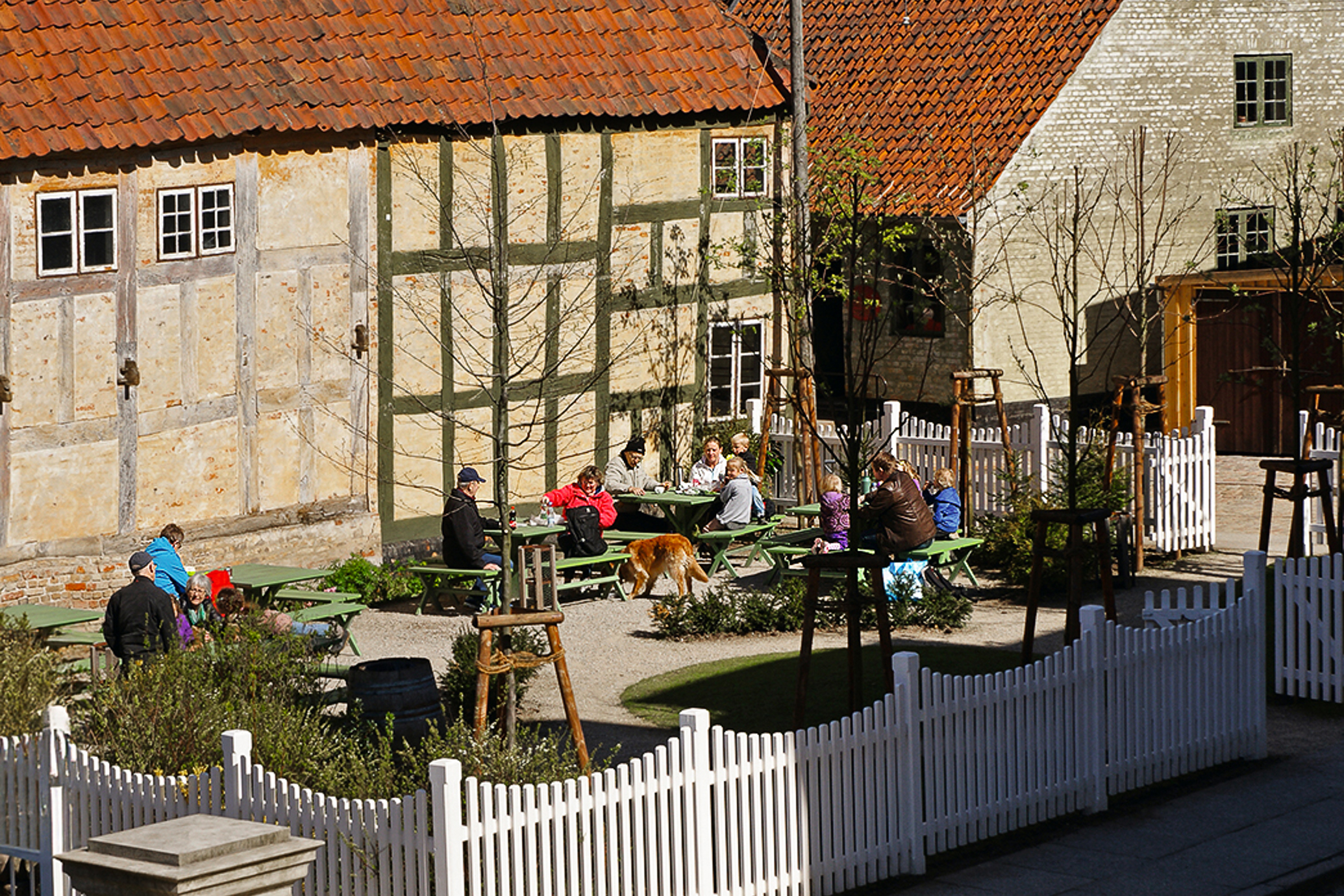 If you prefer to sit outside, there are lots of nice spots and benches around Den Gamle By. Another possibility is the tables and benches at the Festival Grounds.