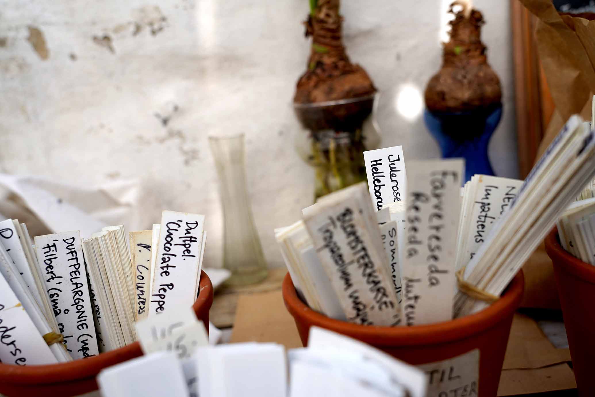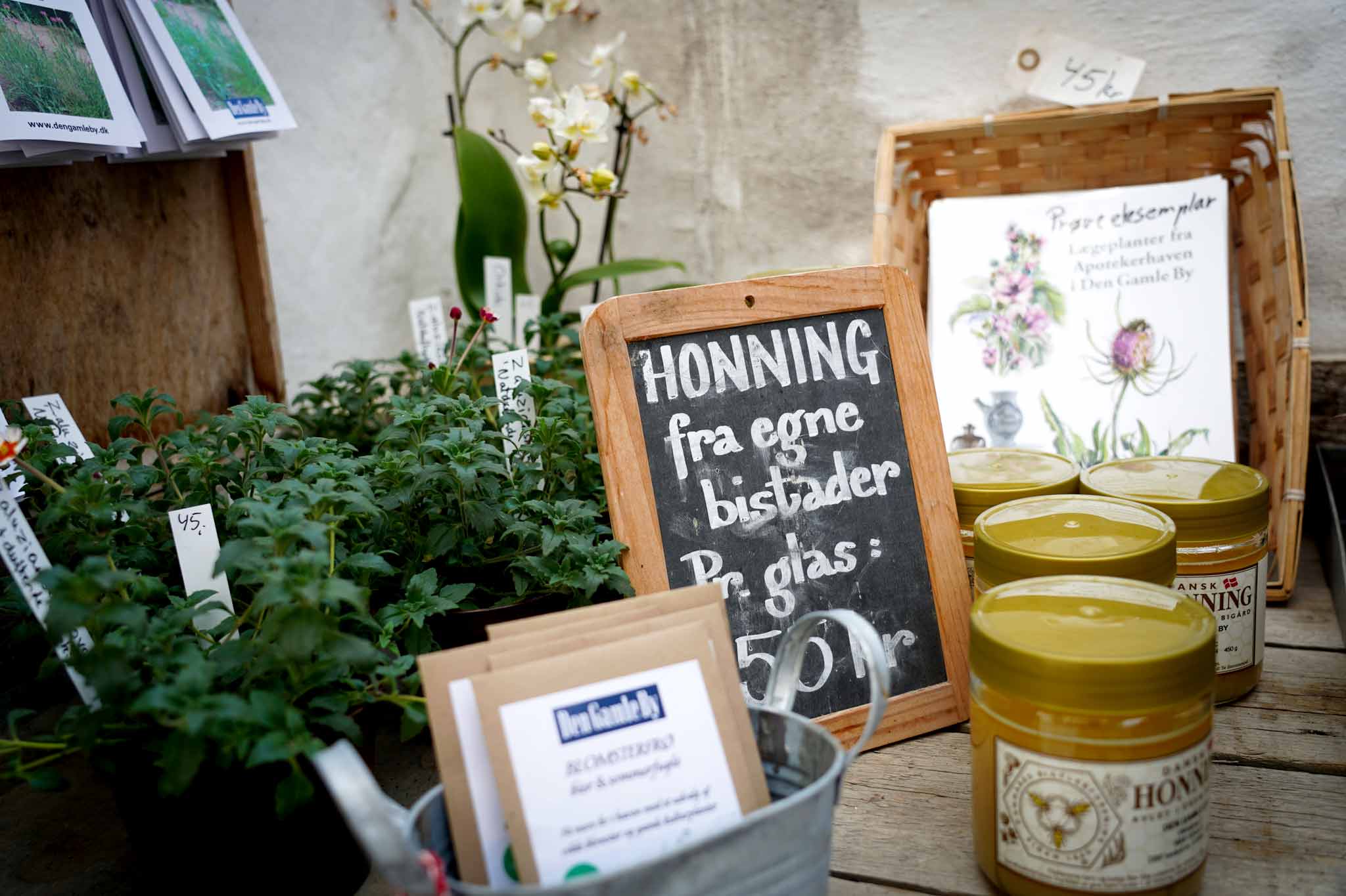 During the summer and in the run-up to Christmas, we sell plants from the nursery. Here, you can buy small plants from the museum’s plant collection, honey from the nursery’s beehives and seeds from Den Gamle By’s gardens.