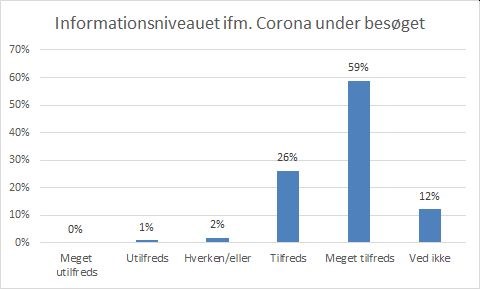 Undersøgelsen viser at i forhold til museets informationniveau var der 1 % af de adspurgte som var utilfredse og 85 % som er tilfredse eller meget tilfredse, og i forhold til muligheden for at desinficere hænder var der 3 % som var utilfredse og 82 % der var tilfredse eller meget tilfredse.