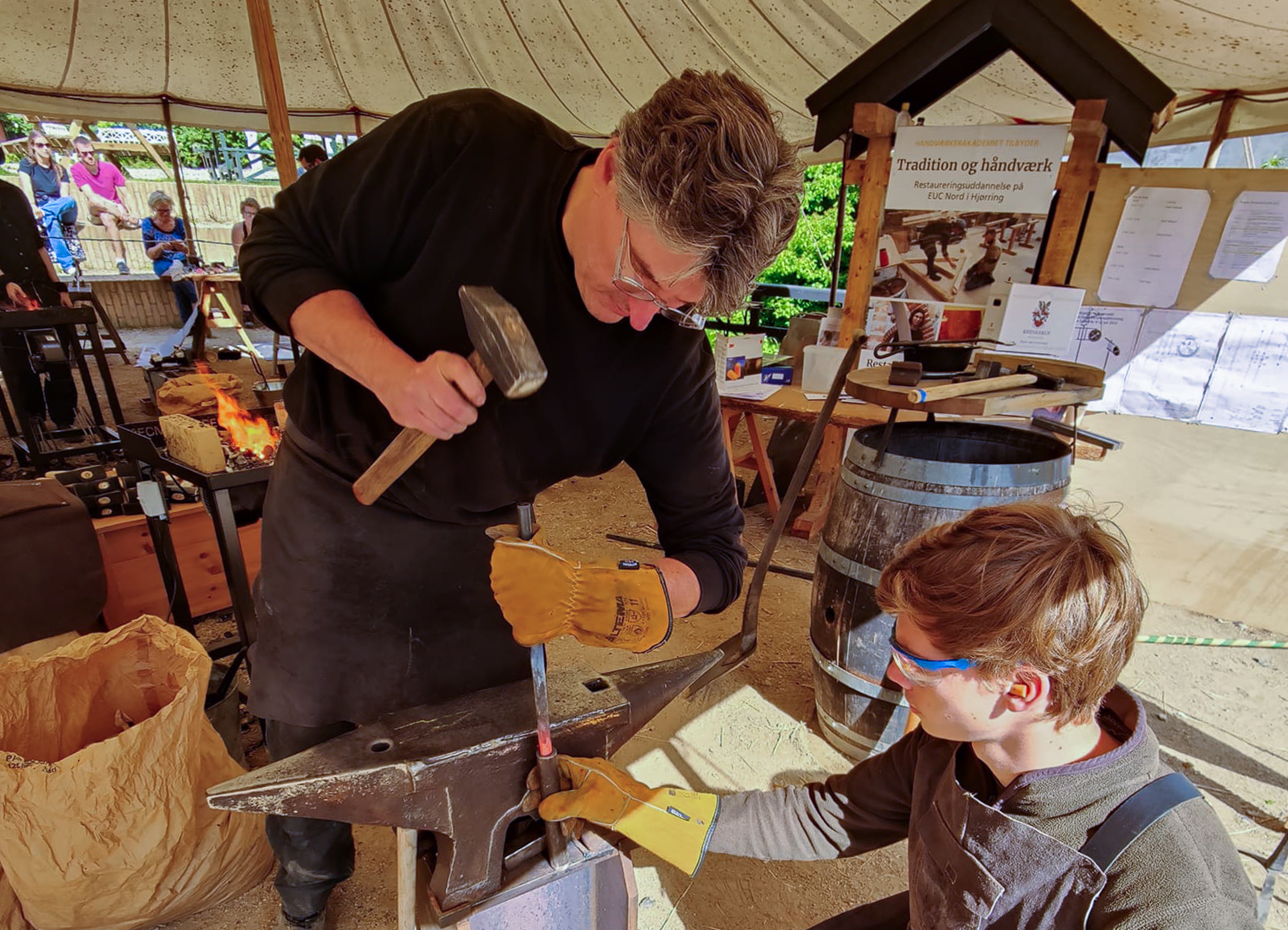 Hver weekend og i Kristi-himmelfartsferien er der oplevelser for store og små i teltet på Festpladsen – fra Smedefestival til vinduesrestaurering, hesteskoning, nissehuse i ler og mad med gamle sorter.