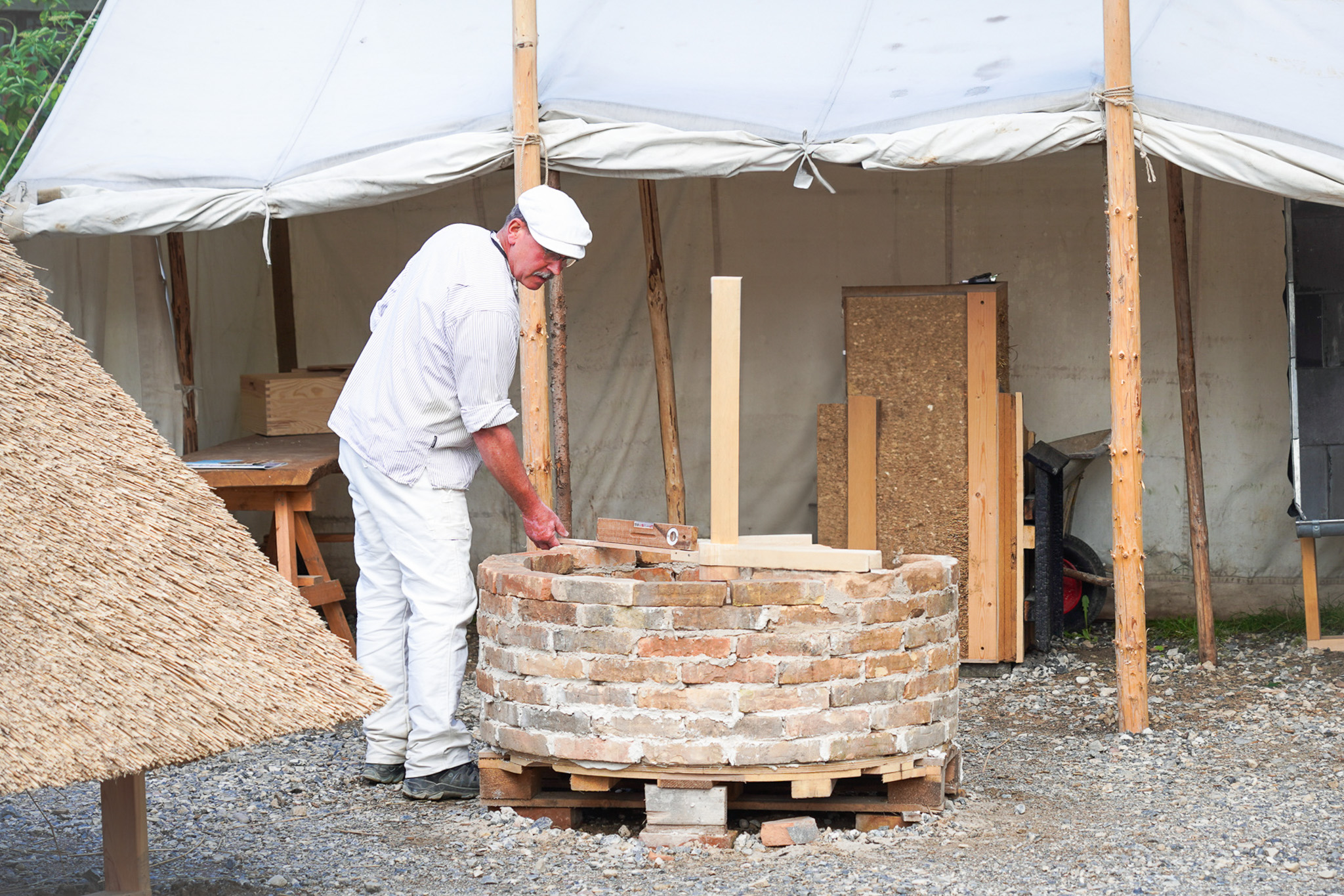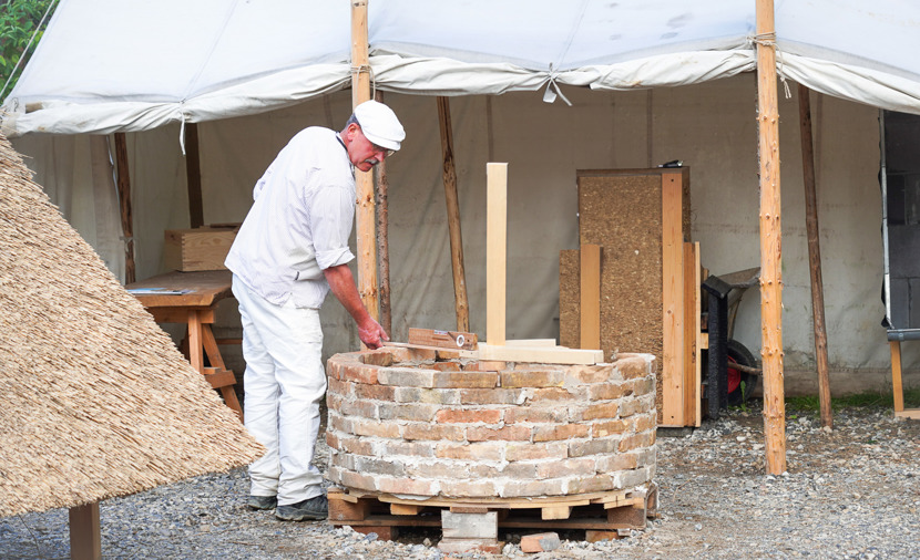 Prøv at lave lersten til de små huse, blande lermørtel, mure vægge op og lege med teknikker og materialer fra naturen.