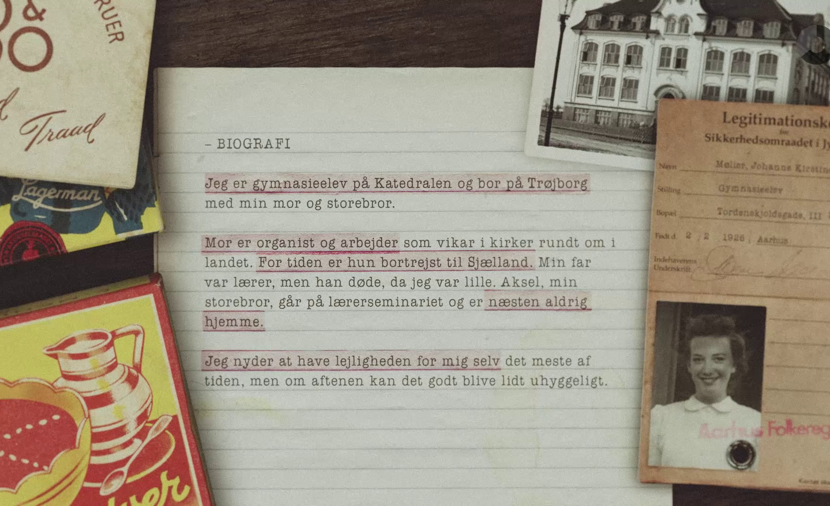 Med den gamle politistation og Gestapo-bygning som ramme, arbejder eleverne med besættelsestidens dilemmaer. Der tages udgangspunkt i syv personkarakterer, der på hver sin måde klarede sig igennem et krigsramt Aarhus. Eleverne følger en af karaktererne, hvis livsfortællinger og dilemmaer udfoldes gennem brugen af digitale id- kort på en tur rundt på museet.