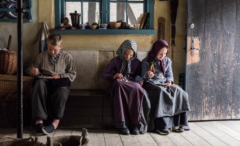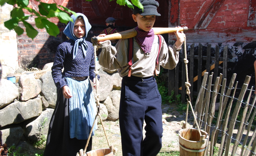 Klassen begiver sig ud på en rejse i tid og rum og transformeres til asylbørn i 1864. Gennem improviseret rollespil oplever børnene på egen krop, hvordan det var at være barn for 150 år siden. Rollespillets tidsrejse ledes af museets undervisere og aktører. For at gøre illusionen nærværende iklædes eleverne historiske dragter og roller. Når alle er omklædt begynder rollespillet, og museets underviser leder børnene tilbage til tiden med hestevogne, hvor hårdt arbejde og kæft, trit og retning var hverdagskost. I Købmandsgården skal asylbørnene arbejde for Madam Svendsen med at stable brænde, hente vand, feje, pudse vinduer og vaske tøj.