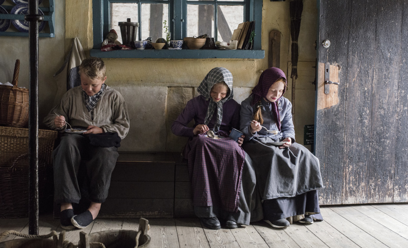 Frokosten består af en portion byggrød, og dagen fortsætter i skolestuen, hvor udenadslære, salmevers og dydighed er ingredienserne til børnenes dannelse. Når dagen nærmer sig afslutningen bliver klassen ført tilbage til deres egen tid. Underviseren taler med eleverne og deres oplevelser og refleksioner og giver dem mulighed for at give udtryk for de tanker og følelser der kom i spil gennem forløbet og sætter dem i perspektiv i forhold til børnenes virkelighed i dag.
