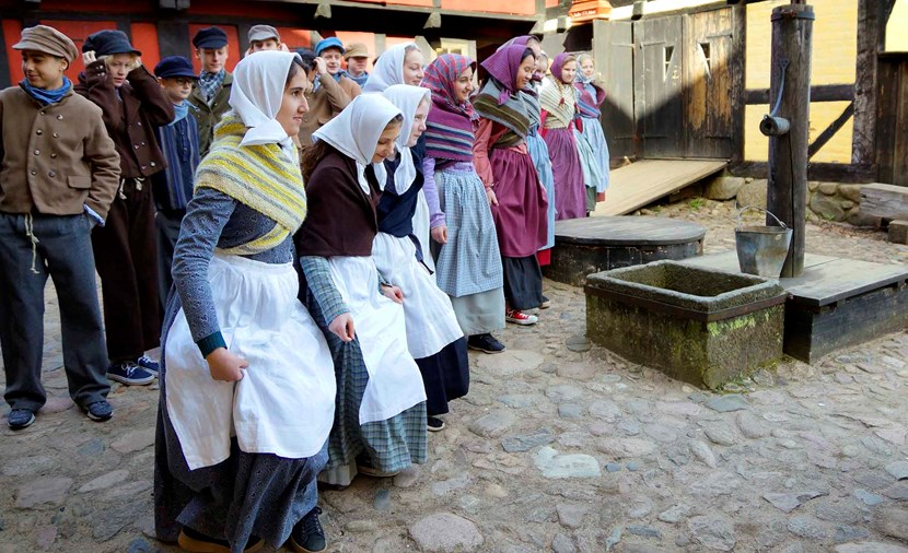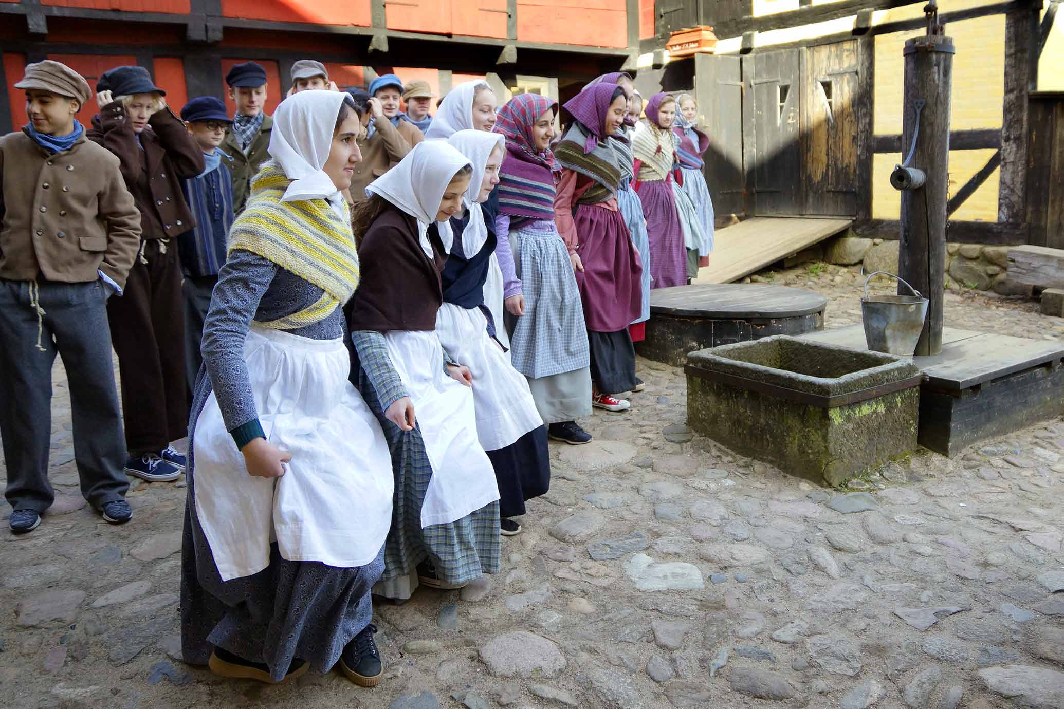 Derefter klæder klassen om til historiske dragter og går en tur gennem byen, hvor de lærer hvordan man skal opføre sig som barn i 1800-tallet inden skoledagen begynder.