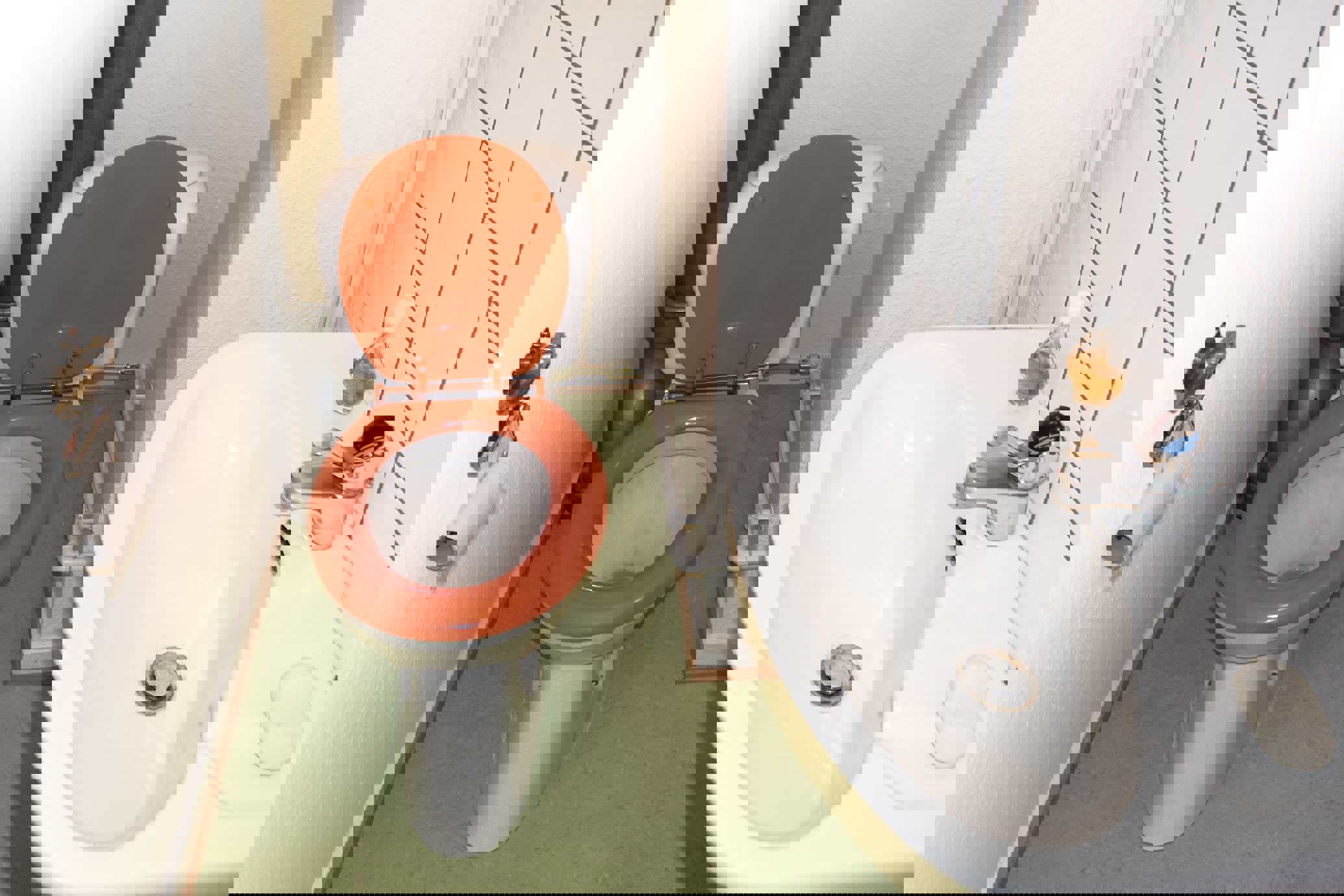 WC’et hos gynækologen ser ud som de toiletter, vi kender i dag, hvor cisternen og kummen er integreret.