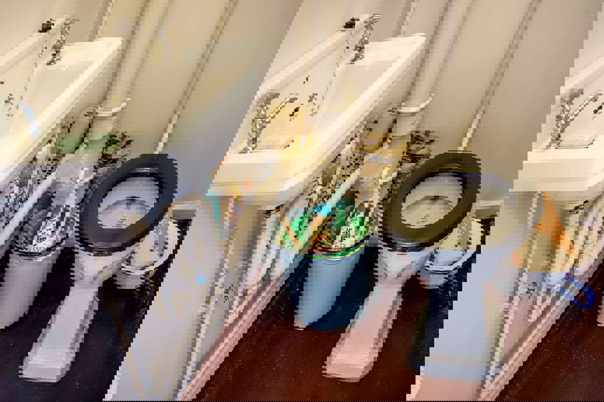 Hos frk. Sneum er der installeret et højtskyllende WC med ”træk og slip”. Denne type WC ændrede sig ikke meget fra slutningen af 1800-tallet, hvor de første blev installeret i danske hjem, og til frem 1974.