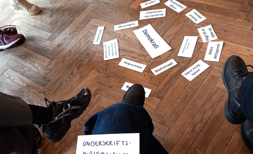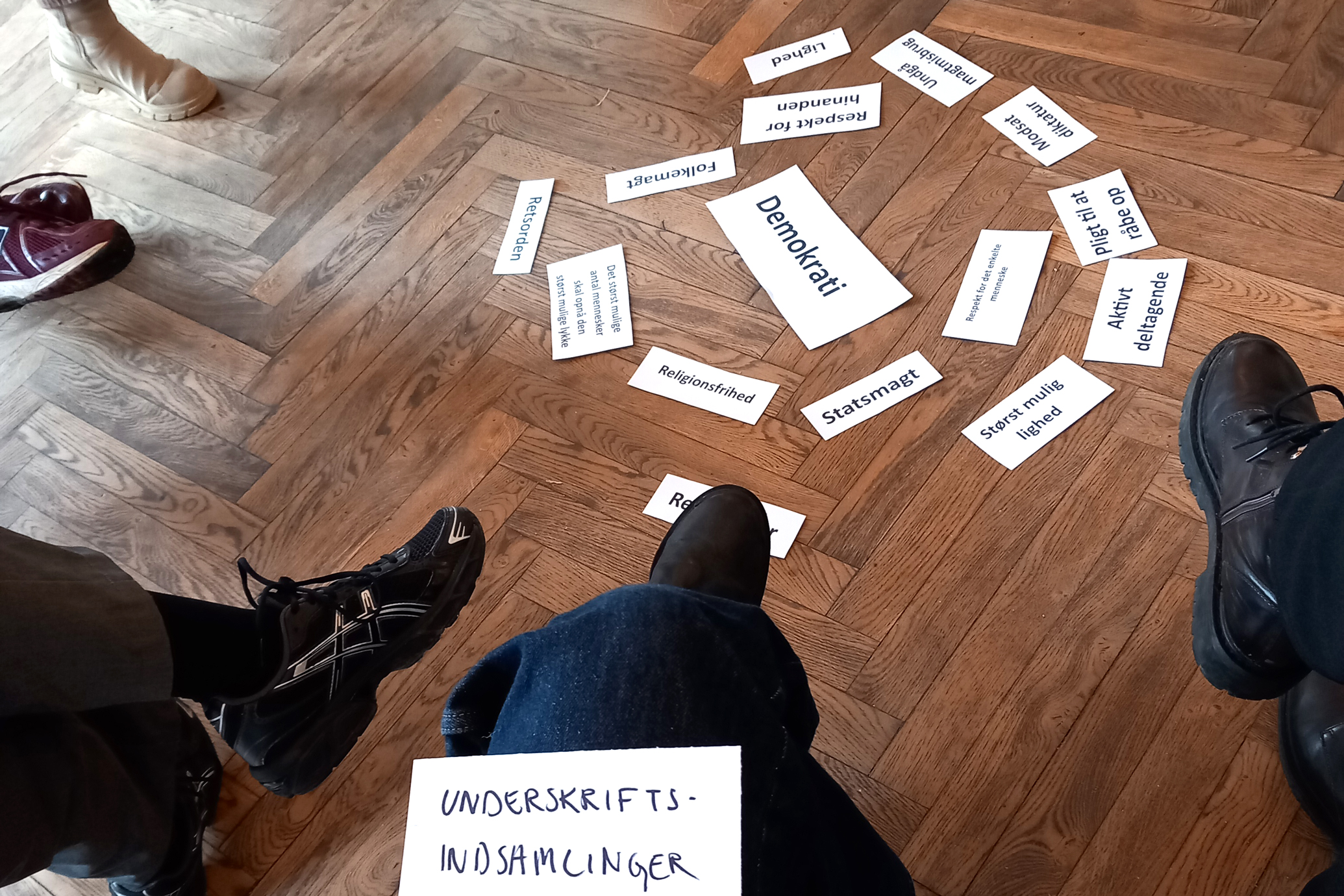 Efter en times rundtur på museet, foregår anden halvdel af forløbet med diskussion, samtale og øvelser om nutidens demokrati. Hvordan hænger nutidens demokrati sammen med 1800-tallets? Hvilke muligheder har I hver især, for at deltage i demokratiet? Og har jeres stemme i det hele taget en betydning i den store sammenhæng?